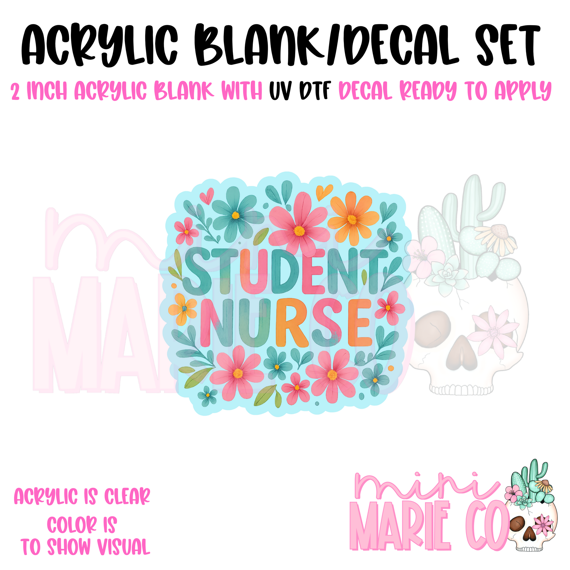 Nursing Student Floral Acrylic Blank/ UV DTF Decal Set