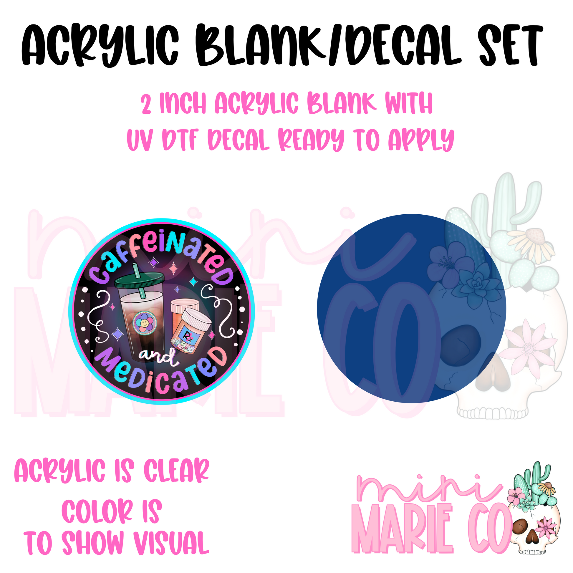 Caffeinated and Medicated Acrylic Blank/ UV DTF Decal Set