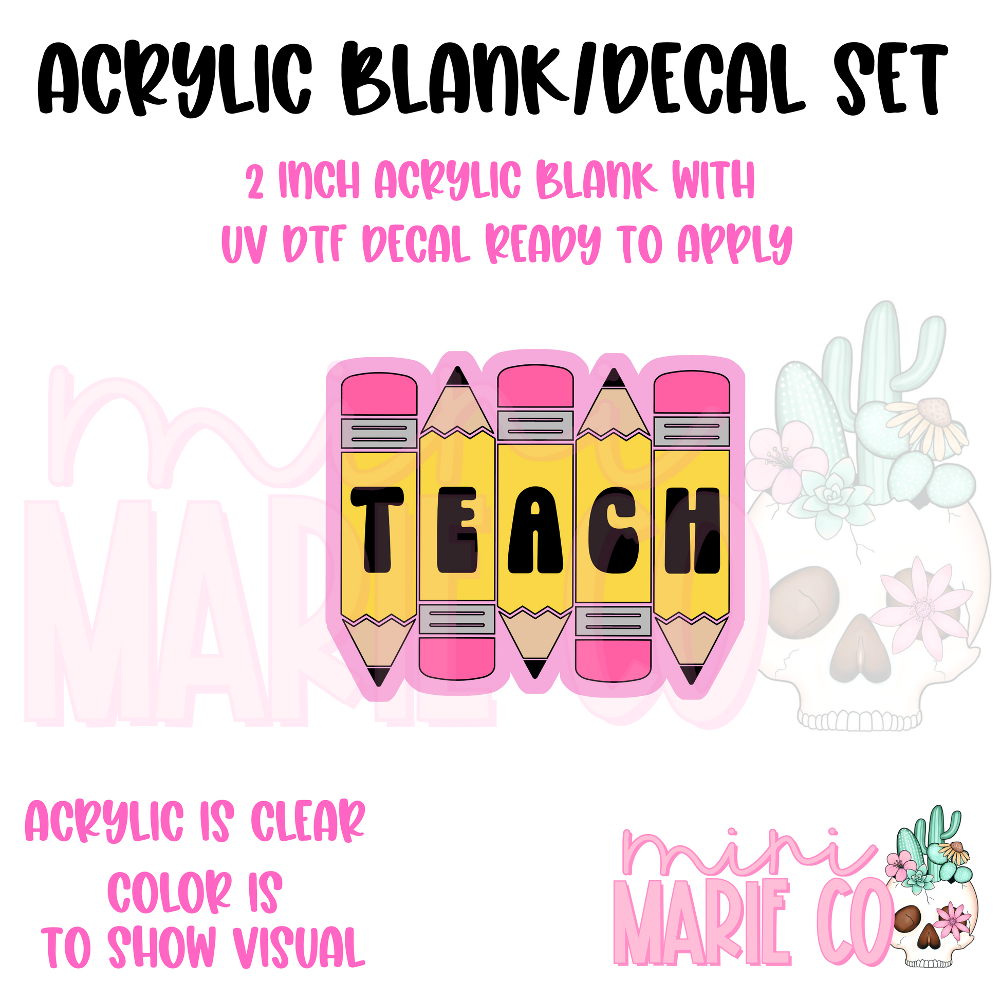 Teach Pencils Acrylic Blank/ UV DTF Decal Set