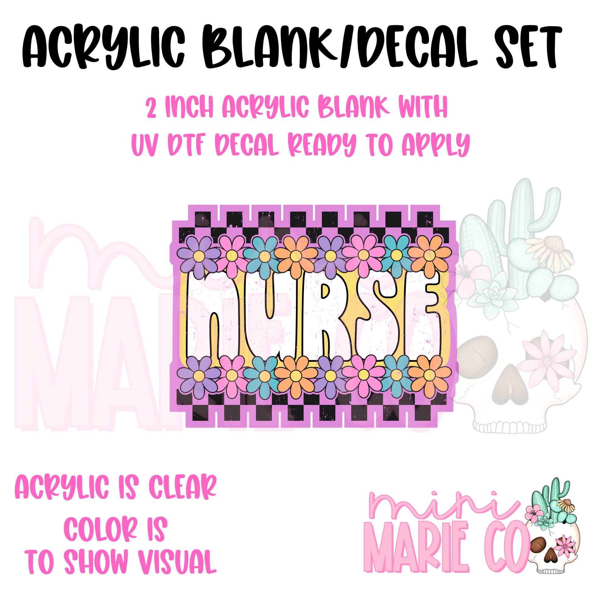 Nurse Florals & Checker Border Acrylic Blank/ UV DTF Decal Set