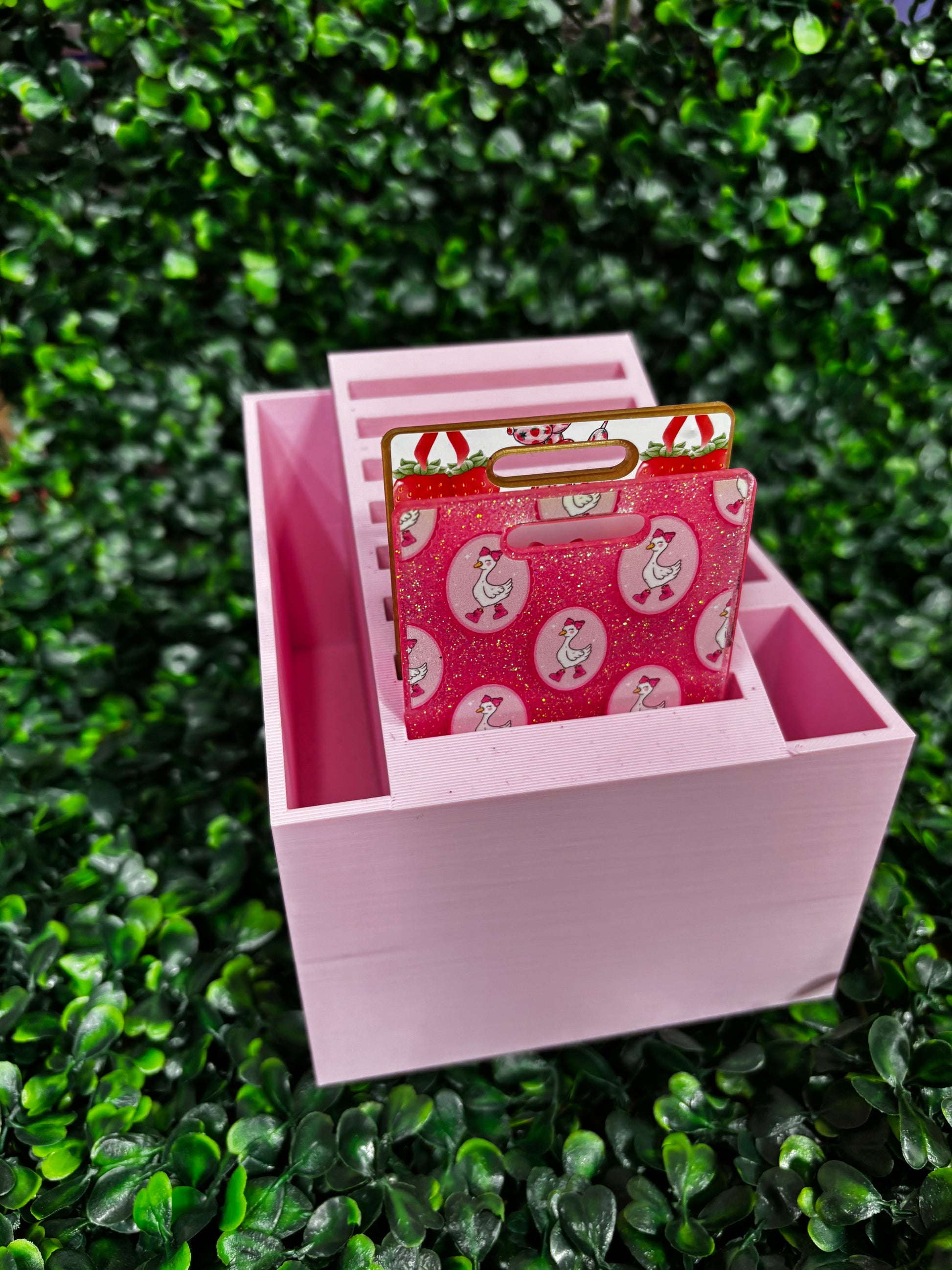 This adorable 3D printed Badge Buddy Caddy is just the thing for organizing and storing your badge buddy blanks or orders!