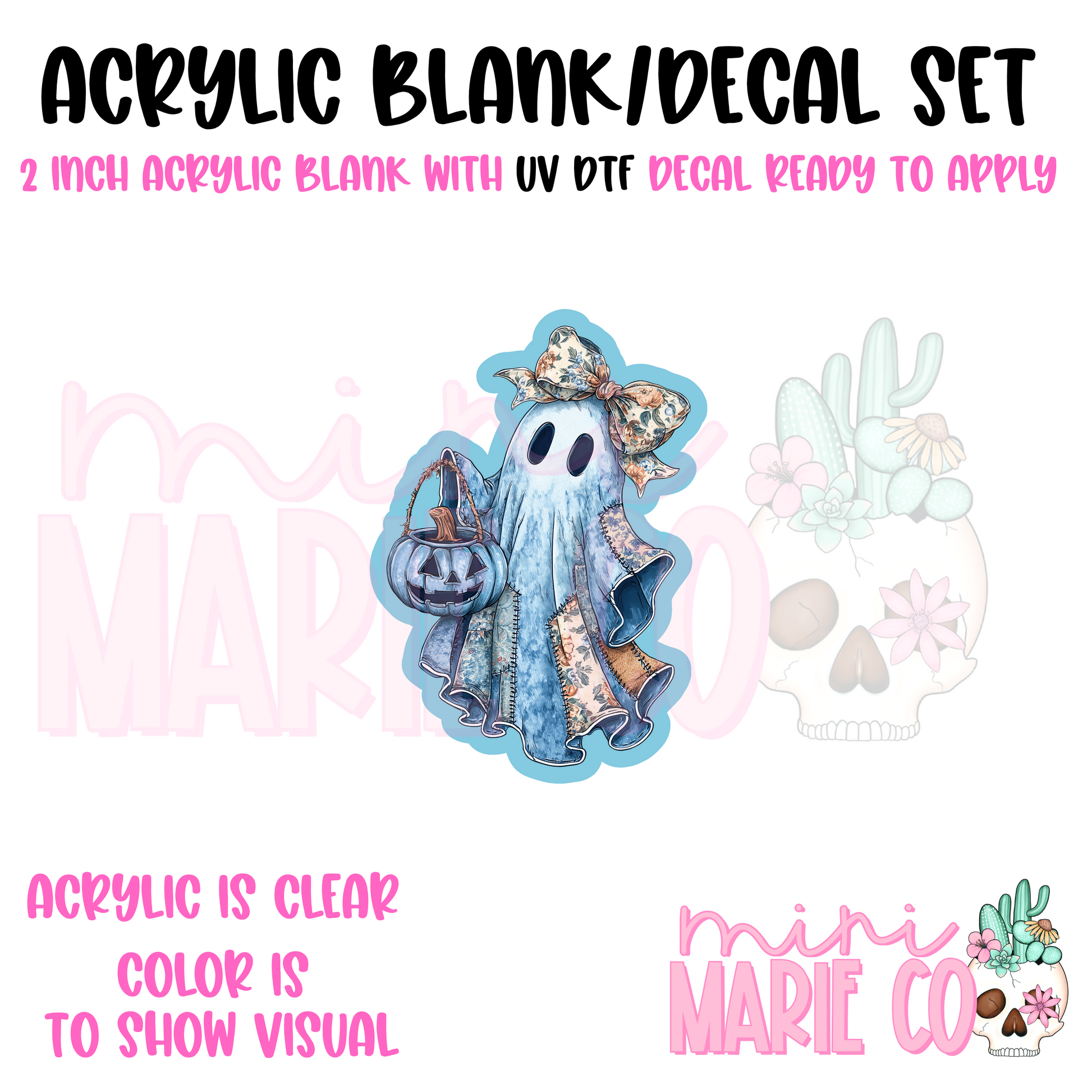 Blue Denim Ghost With Pumpkin Bucket Acrylic Blank/ UV DTF Decal Set