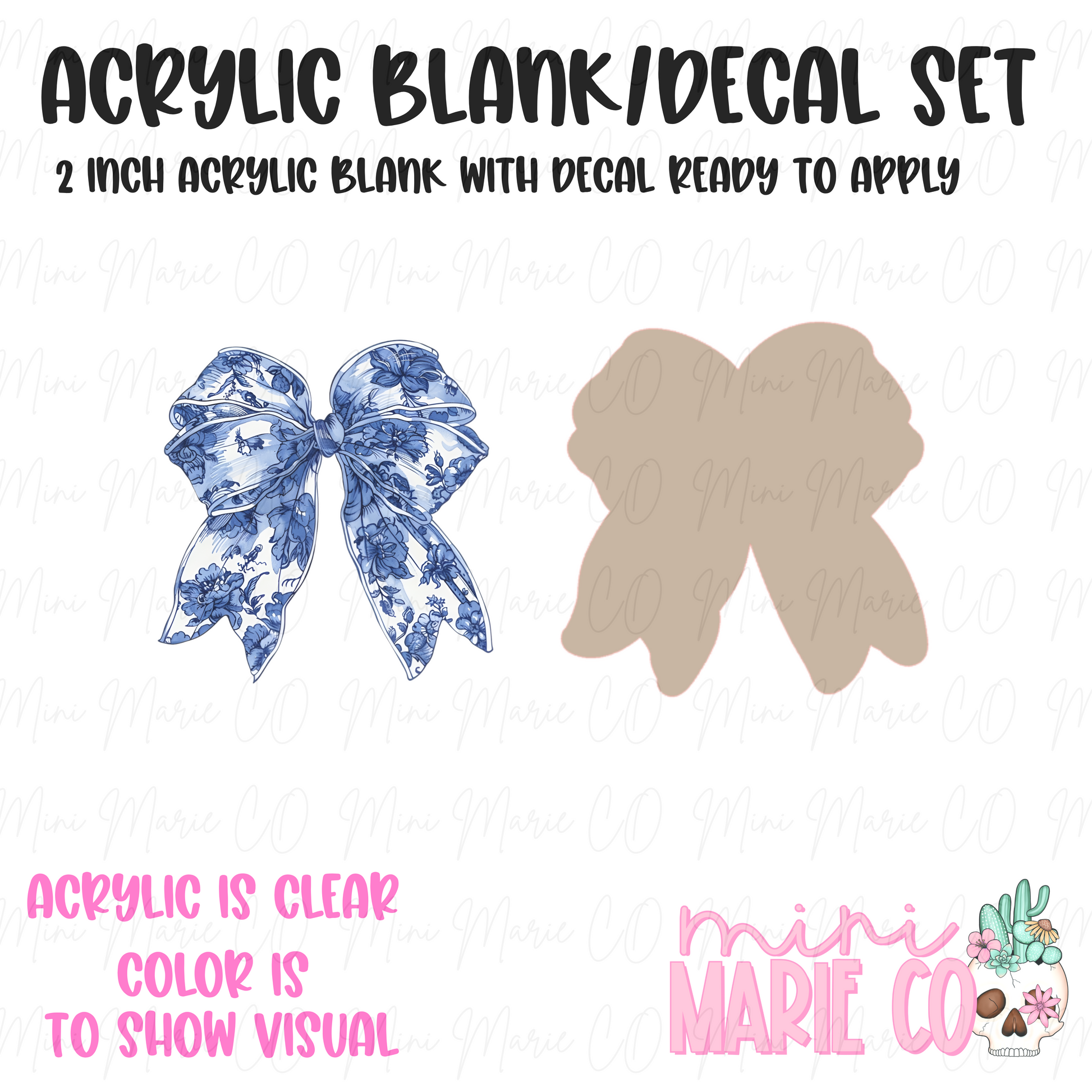 Blue/White Floral Bow Acrylic Blank/Decal Set
