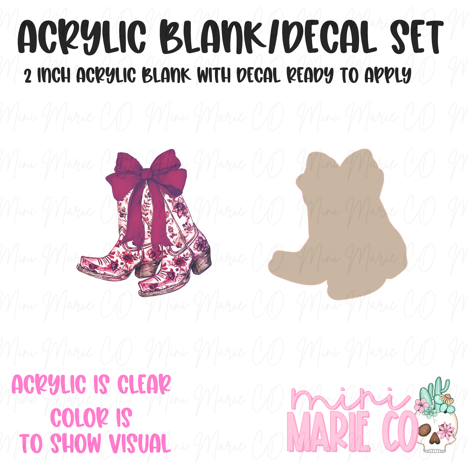 Boots Maroon Floral Bow Acrylic Blank/Decal Set
