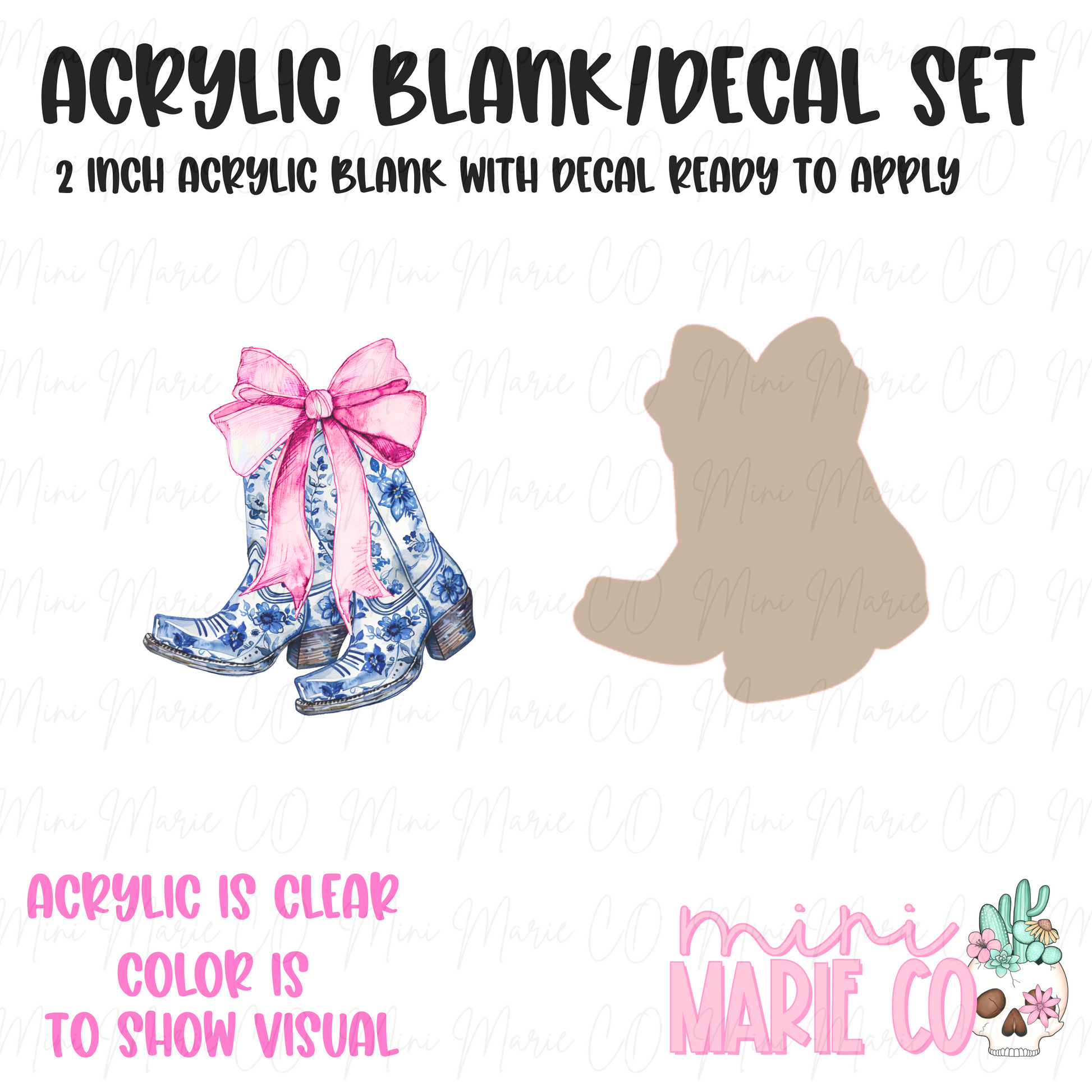 Boots Pink Blue Floral Bow Acrylic Blank/Decal Set
