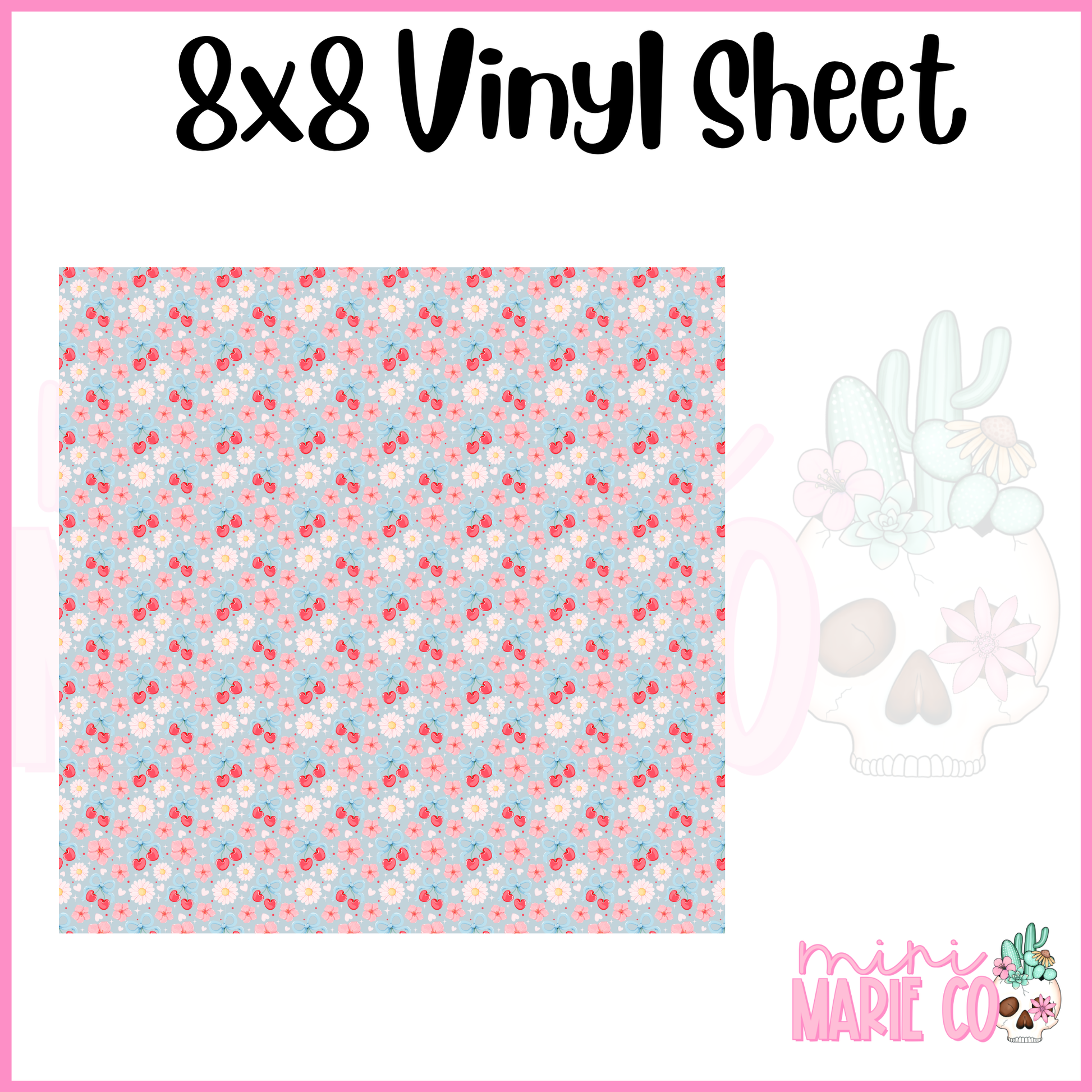 Blue Cherry with White Daisies Vinyl Sheet 8x8