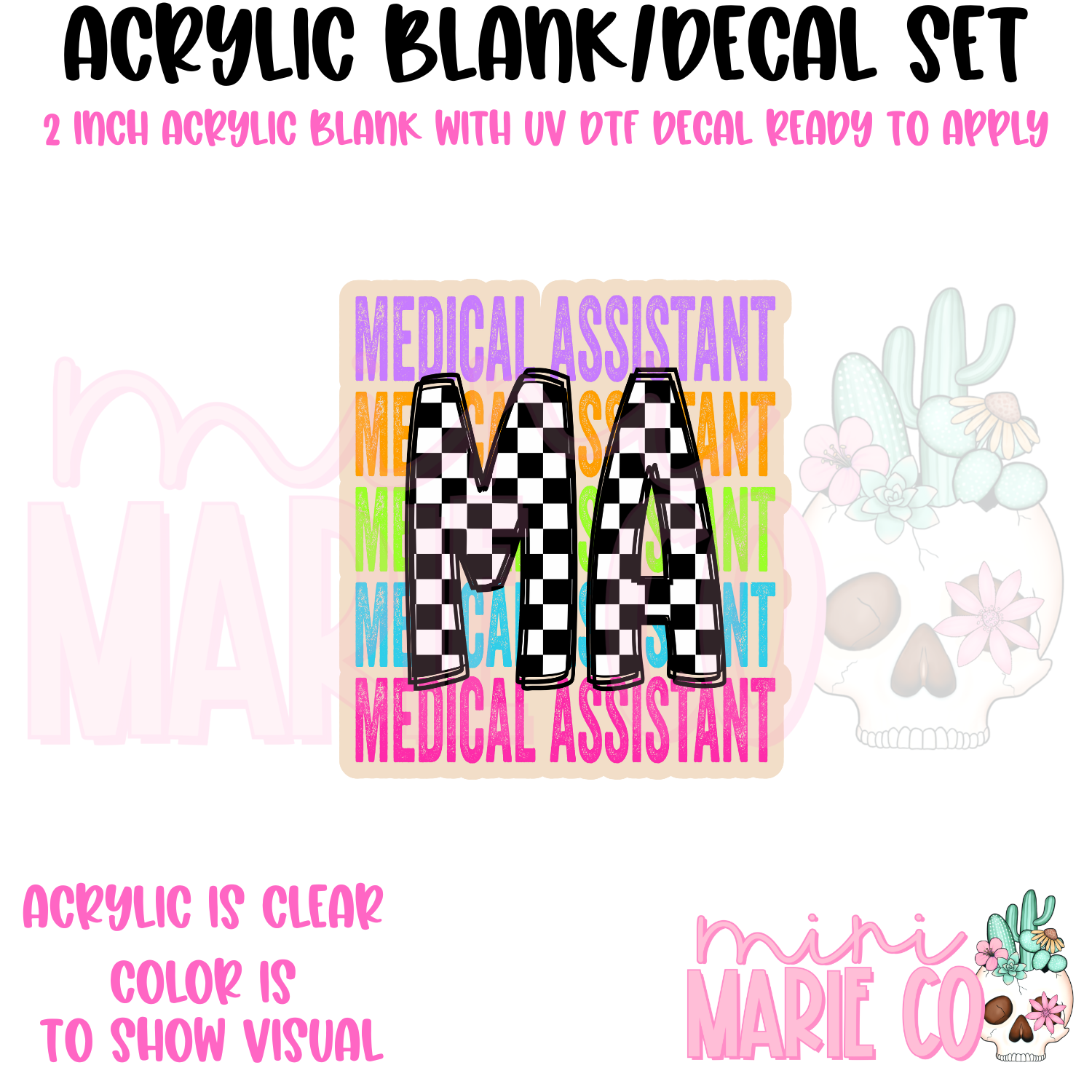 MA Colorful Checkered Acrylic Blank/ UV DTF Decal Set