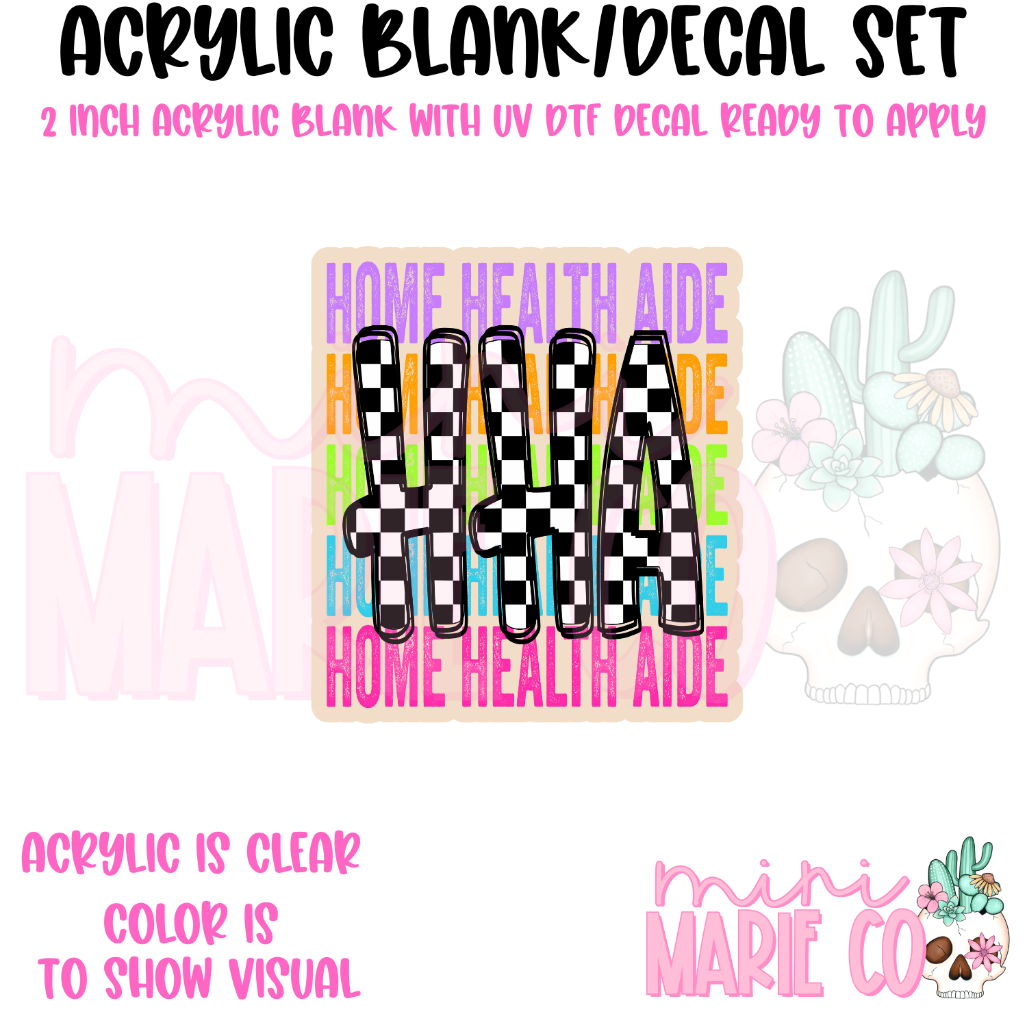 Home Health Aide Colorful Checkered Acrylic Blank/ UV DTF Decal Set