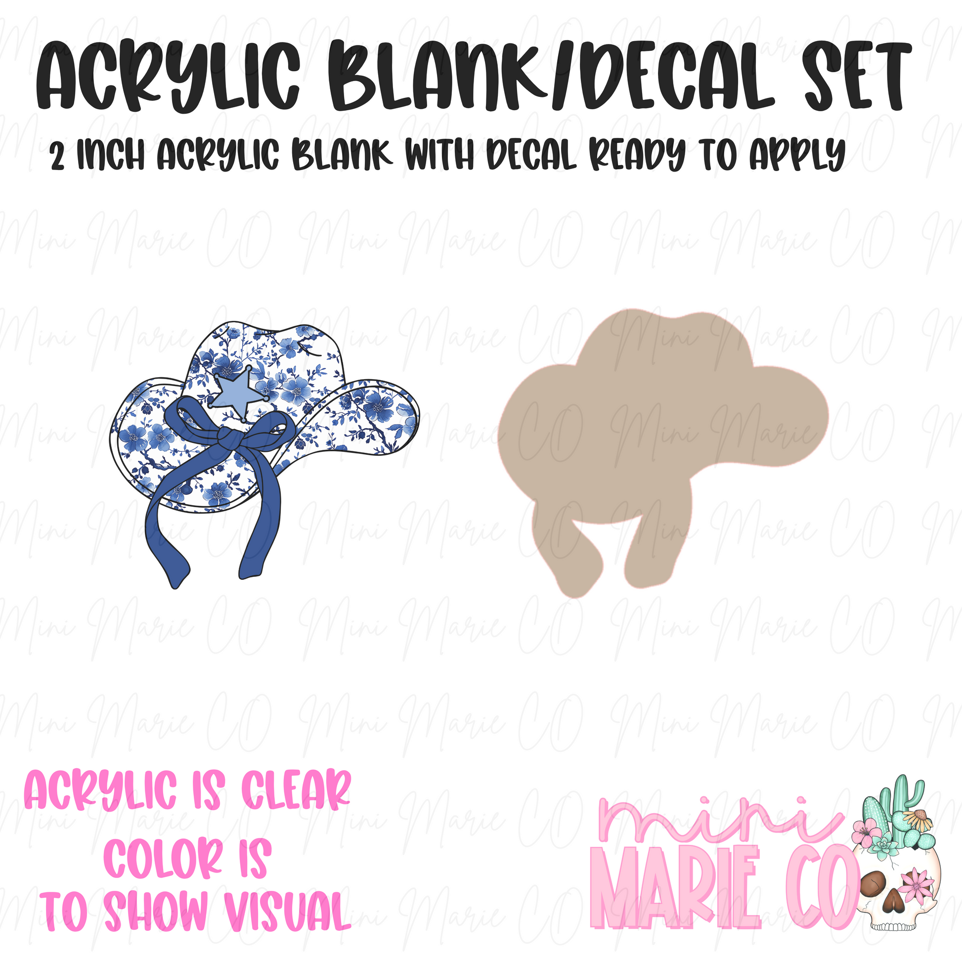 Cowgirl Hat Blue Floral Bow Acrylic Blank/Decal Set