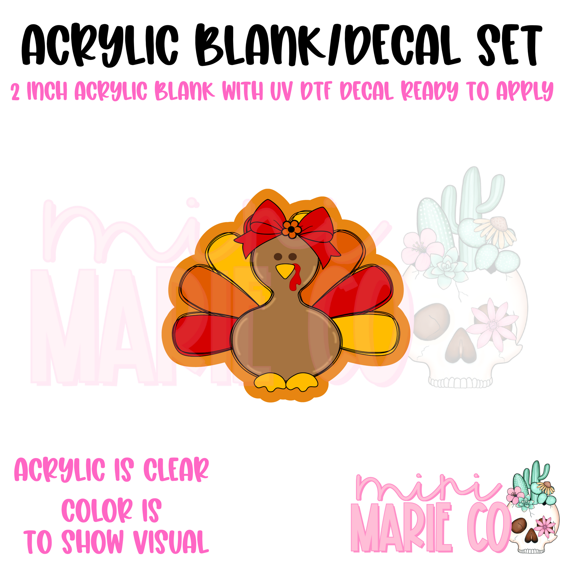 Cute Fall Turkey Acrylic Blank/ UV DTF Decal Set