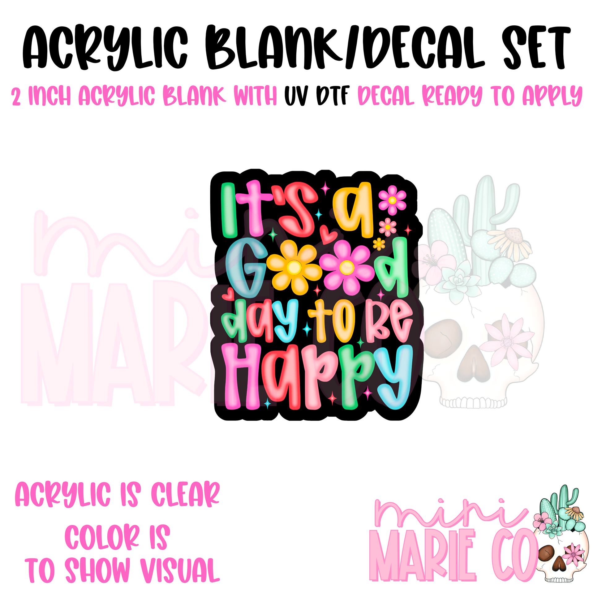 Its A Good Day to be Happy Acrylic Blank/ UV DTF Decal Set