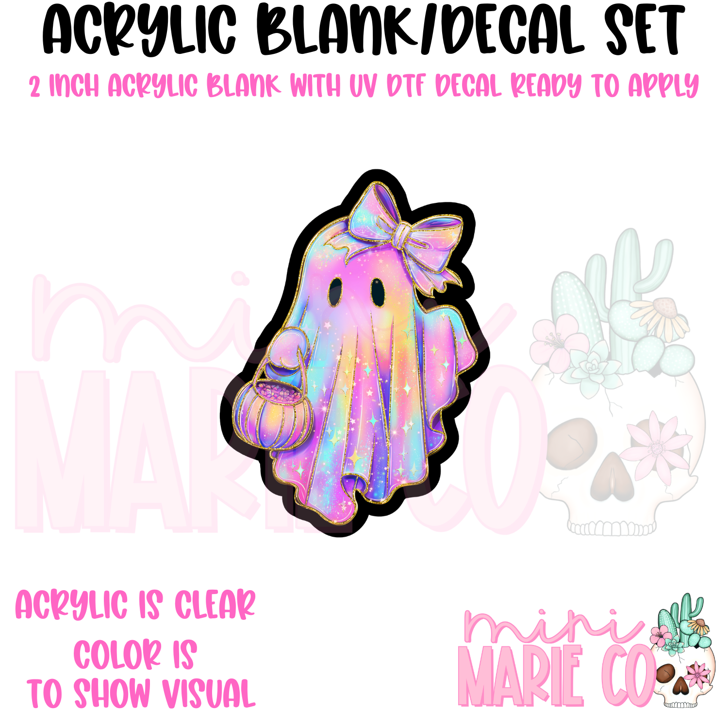 Iridescent Ghost Acrylic Blank/ UV DTF Decal Set
