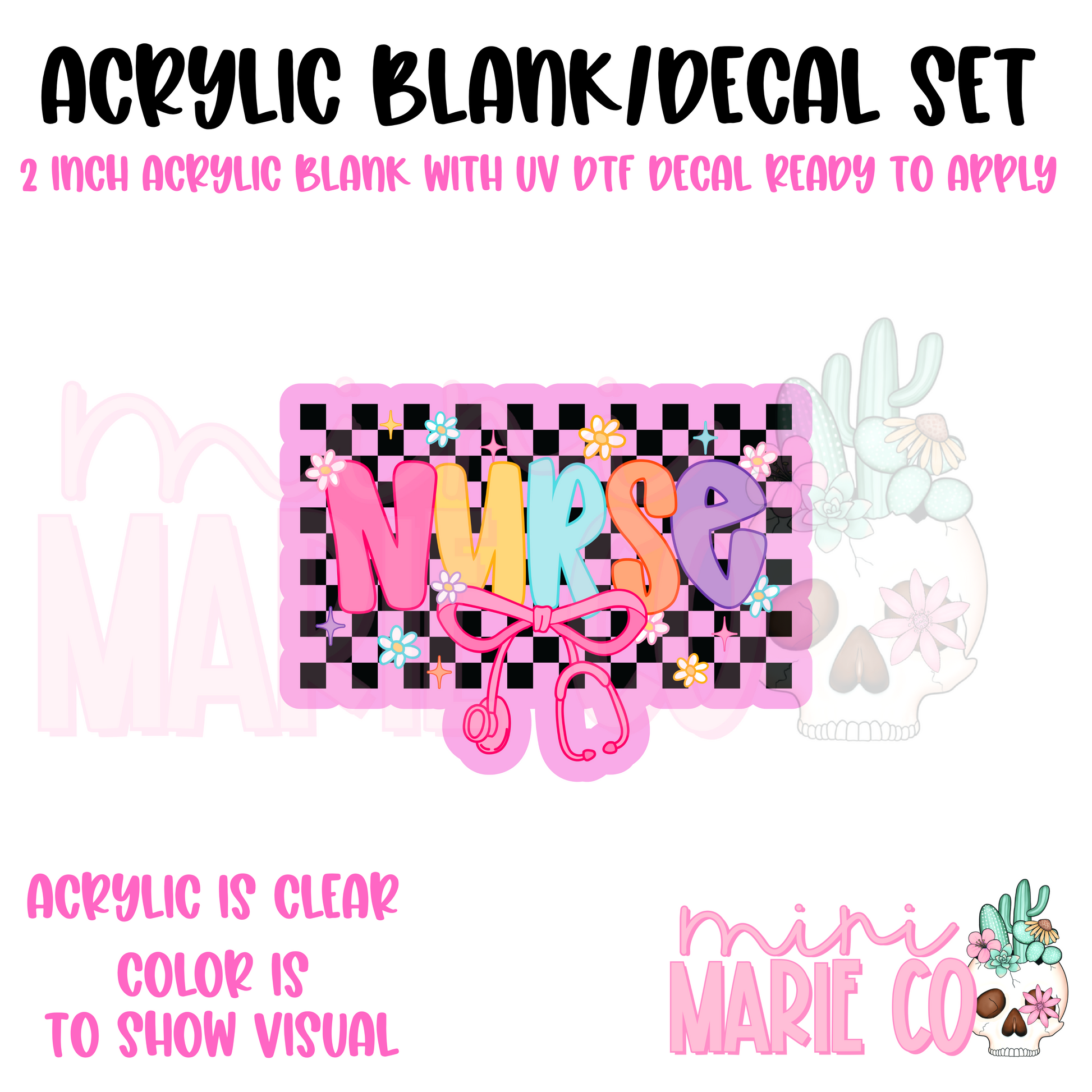 Nurse Checkered Stethoscope Bow Acrylic Blank/ UV DTF Decal Set