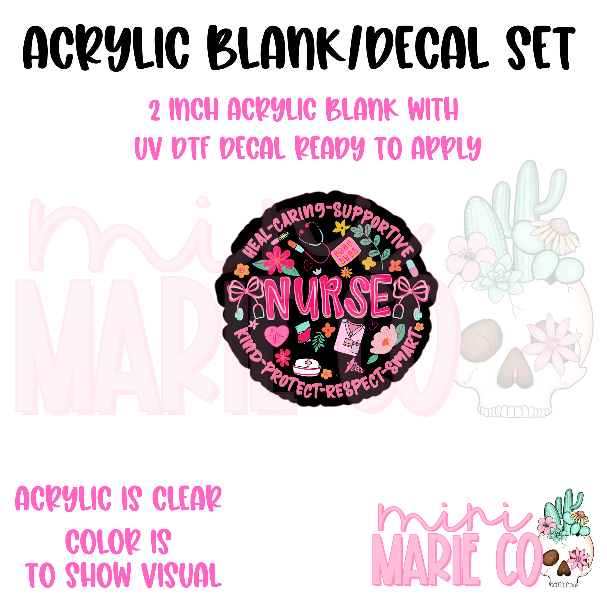 Nurse Circle Acrylic Blank/ UV DTF Decal Set