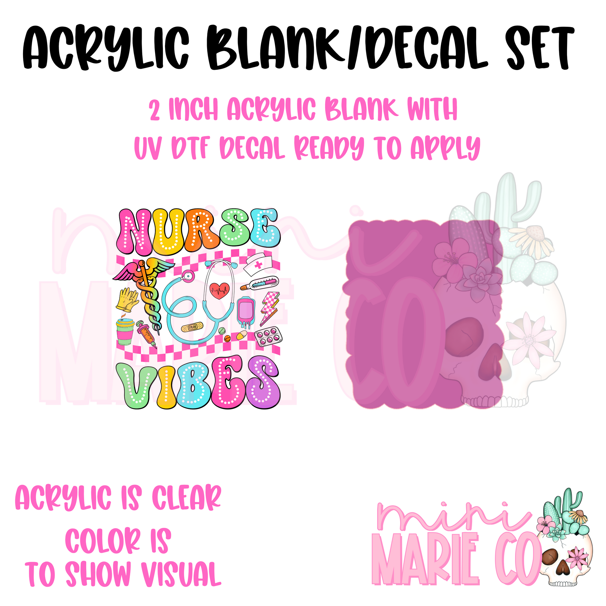 Nurse Vibes Colorful Acrylic Blank/ UV DTF Decal Set