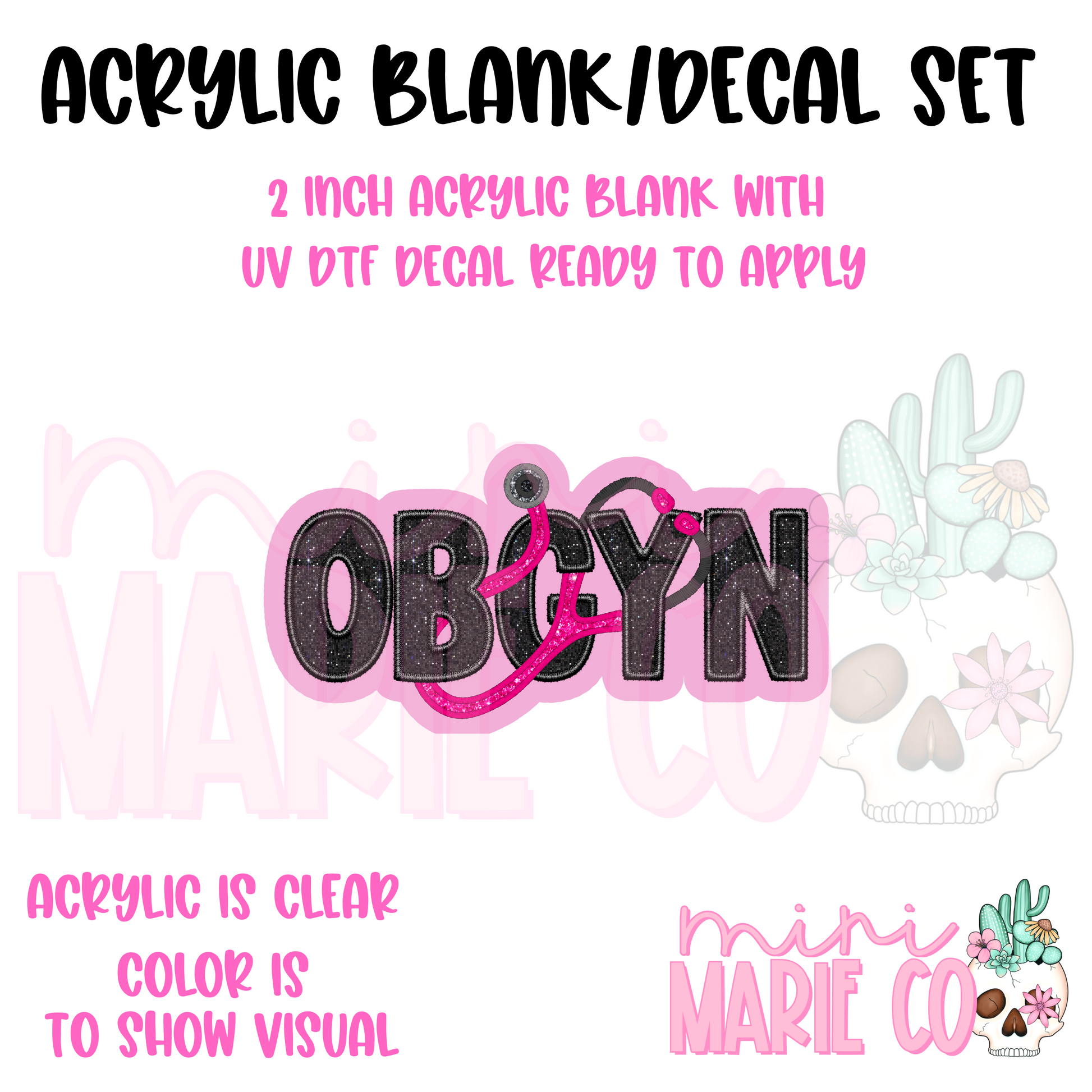 OBGYN Faux Glitter Acrylic Blank/ UV DTF Decal Set