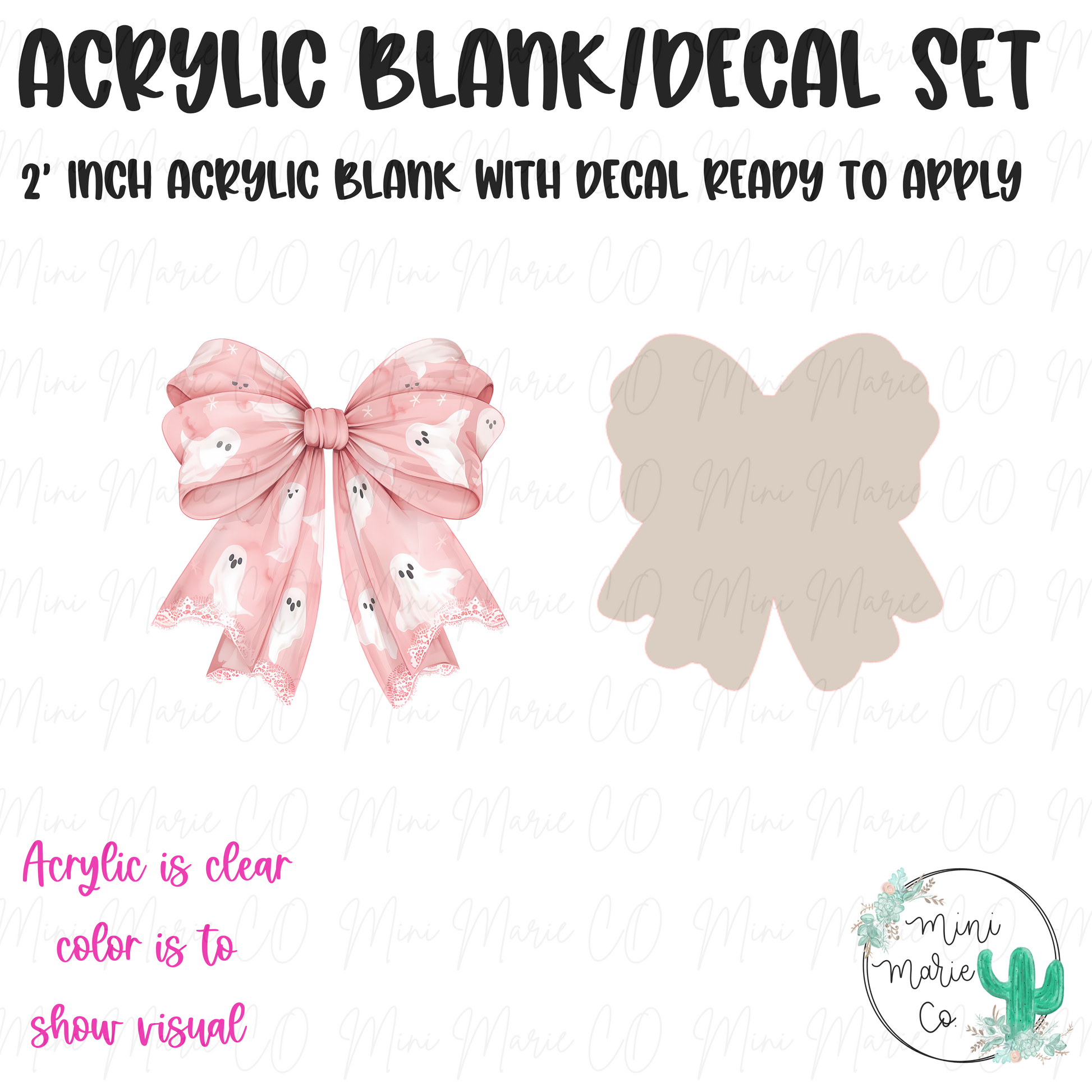 Pink Ghost Bow Acrylic Blank/Decal Set