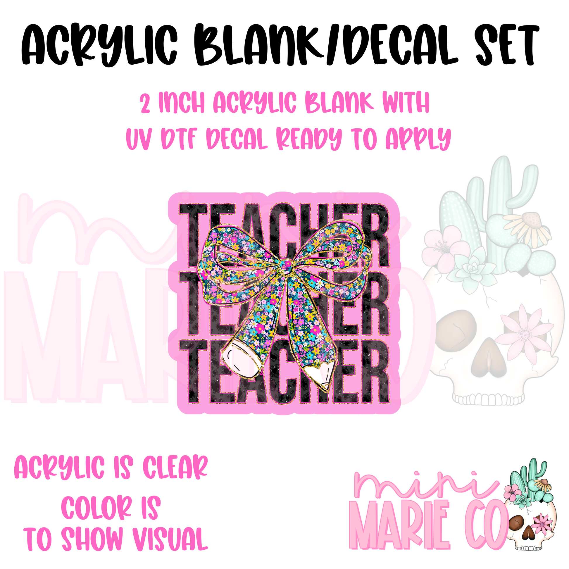 Teacher with Bow Acrylic Blank/UV DTF Decal Set